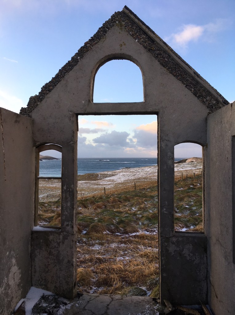 Between 2015-2019, my projects were inspired by traditional Shetland knitted lace and the lives of women who lived in abandoned croft houses in Shetland, a remote island off the coast of mainland Scotland. I experimented with developing traditional lace patterns to produce large-scale, intricate knitted lace panels, which I installed in windows and doorways of abandoned vernacular croft houses on the island to make site-specific photographic works as a testament to the women that had lived there long ago.