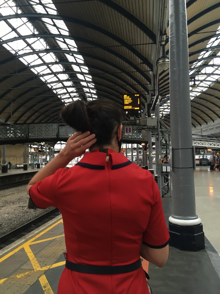 At Newcastle, I’m told there are no trains from Edinburgh to Aberdeen, due to major landslides and floods on the track. Initially, I feel sick but also naively hopeful – as if it will all clear up and get working for when I arrive – either this is a princess talking to herself about being above all this or more pragmatically and closer to the truth; me burying my head. After conversations with the lady at information in Newcastle station – who assures me that Scotrail have a duty to get me to Aberdeen – (looking back I now think why would the make sure I would make my ferry?) and that there will be buses provided. Beside her, I stand on the platform and urgently call the ferry company – I have until 5pm to cancel but really, I’m being pushed further up the country with no idea of what will happen and no way to get back with a massive back pack, old lady shopping trolly full of precious china from China, a front day pack with laptop and a bag with water. Add Corona to that with masks, social distancing, hand sanitiser, no toilets on some trains, no tickets, lockdown in Aberdeen, no place to stay and I’m already thinking of turning back. I call Patti and mention that maybe this is a sign. She said it’s not a sign. There’s maybe no chance of going forward, chance of being stuck and not getting back yet I naively still think there is a way. The information lady gets me on an earlier train out of Newcastle to arrive in Edinburgh 20 minutes ahead of my planned time. I sit in first class waiting to be moved by the conductor who knows I am there and talks with passengers and leaves me be.