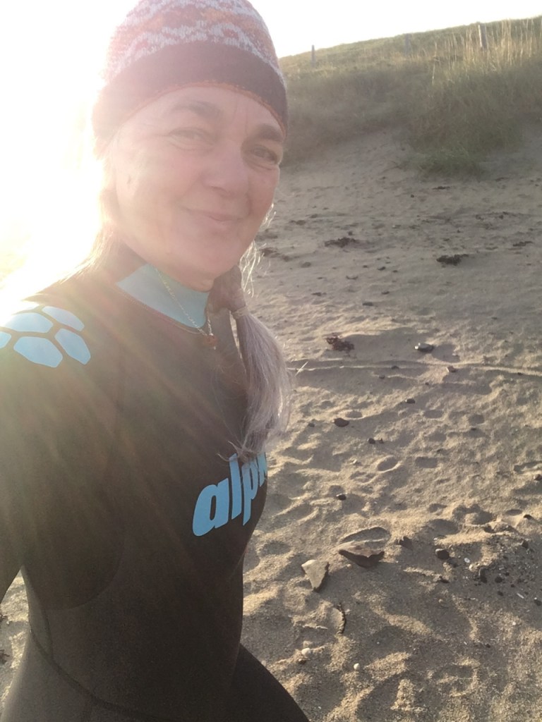It takes a while to get ready to go swimming at the beach, and often it takes longer to sort stuff out when you get home, but I walk down the road, in the wetsuit with a jumper on top, to meet my friend and we walk and chat on the way to the beach. She has given me the confidence to really enjoy the sea, its depths, its clarity, its coldness and its power to bring me to the very present moment and feel alive.