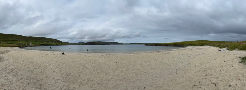 Levenwick Beach is perfect for sea swimming. We wade out, keep going, swim across the bay and back again. In the summer we met a group of 10 yorkshire ladies – all sisters and aunts and cousins, who went in the sea every day on their 2 week holiday. They were also there, chatting and laughing and it is heart warming to see people enjoying this place.