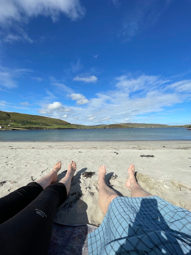 Whilst Deb has been here, we have been to all of the beaches in the South of the island – long, curved Scousburgh probably being the best experience as half a dozen young seals followed us in the sea as we walked along the beach and back. They played and we smiled. St Ninian’s is always beautiful and West Voe, always barren and astonishing in beauty with its wide vista edged in waving grasses.  No seals bathed on Rerwick.