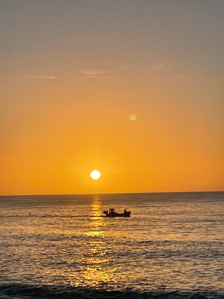 As a small fishing boat passes, I wave to the fisherman. He does not wave back.
