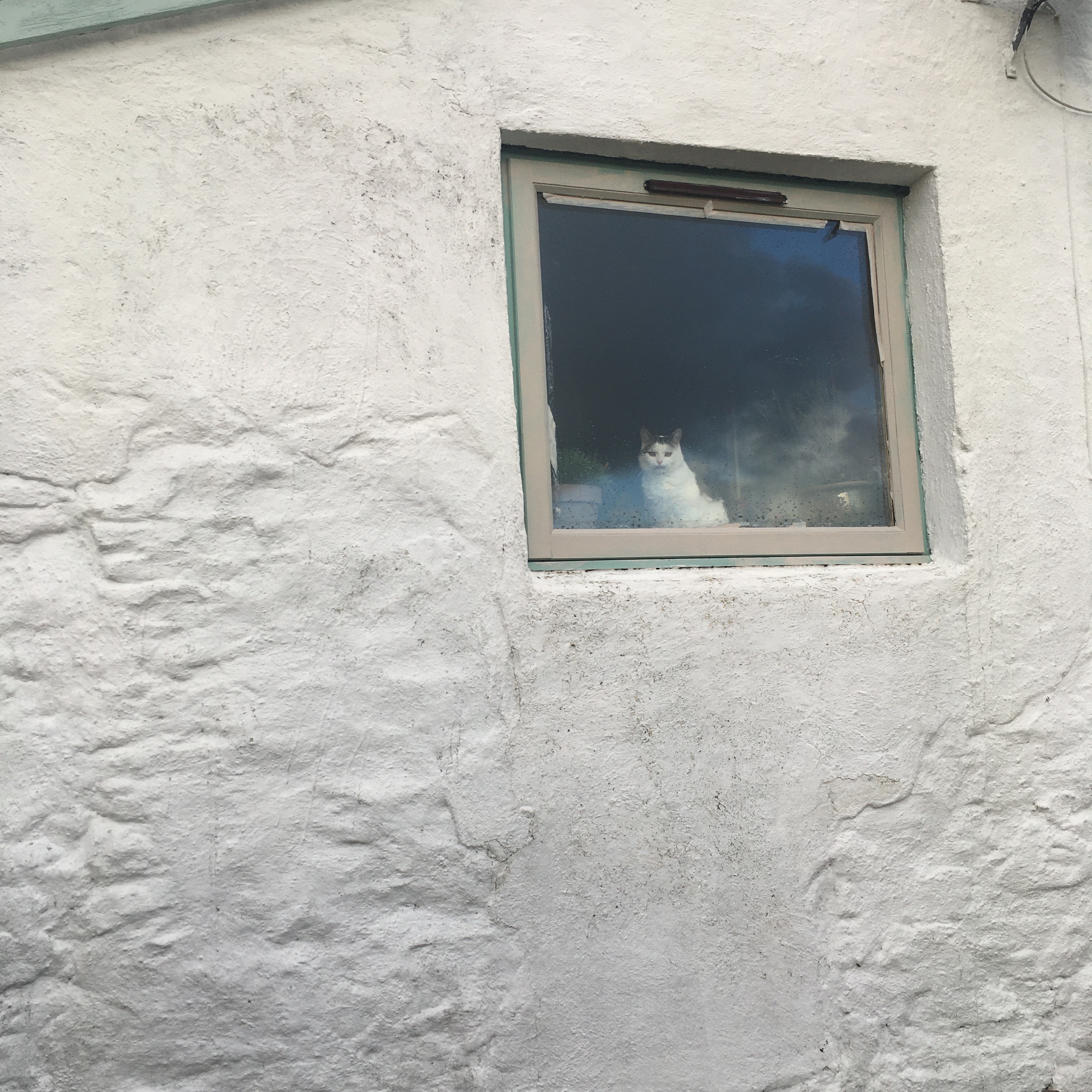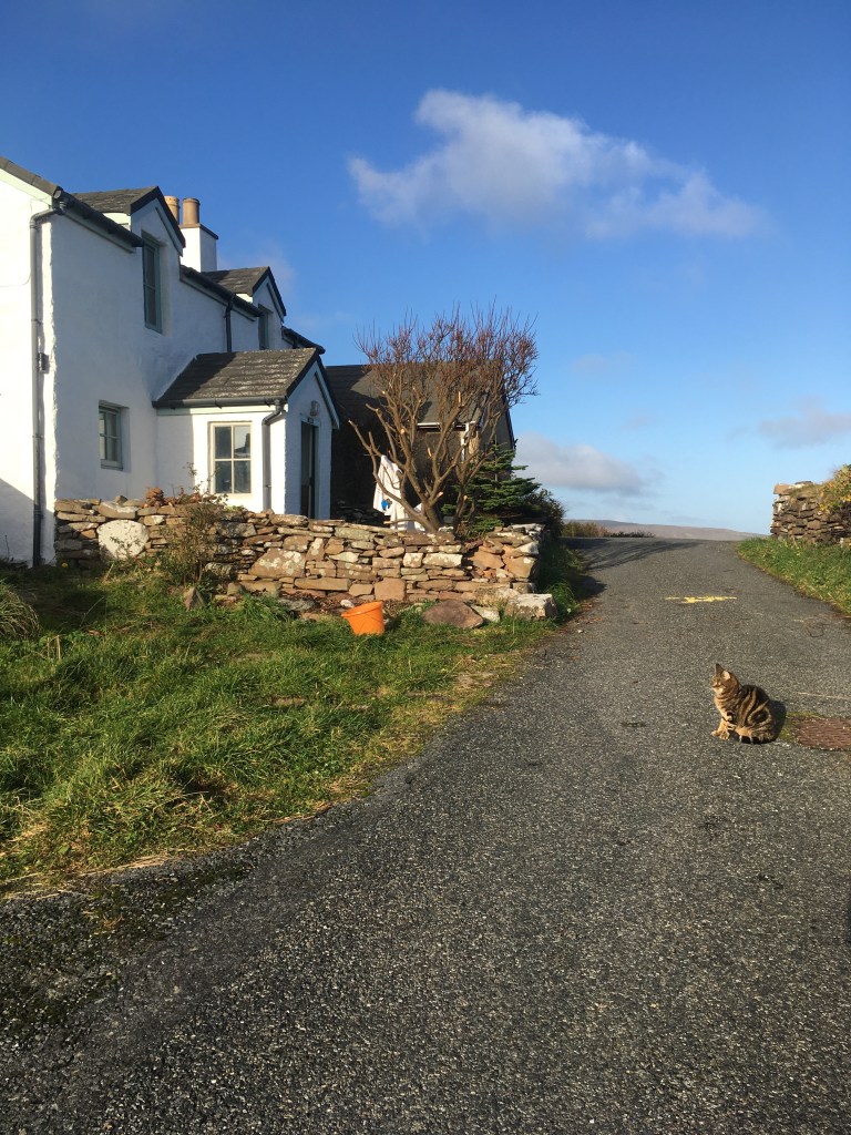 In my dream, I am walking along the side of the croft house, holding the white washed wall with my right hand to both steady myself on the uneven ground and to touch the old dwelling, built an unknown number of years ago, but recognised as being almost 200 years old. The white wash paint, cheaply thrown in a thick running coat painted over the wall just before I bought the house, by the previous owner’s husband – a stoic man a very few words, is/was beginning to flake and grow a frill of green mould around the edges of each flake, a little like lichen, created by the harsh southerly storm whipping winds and lashing rains.