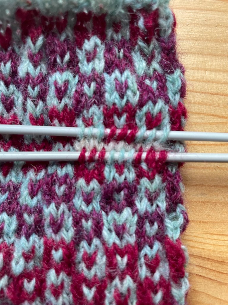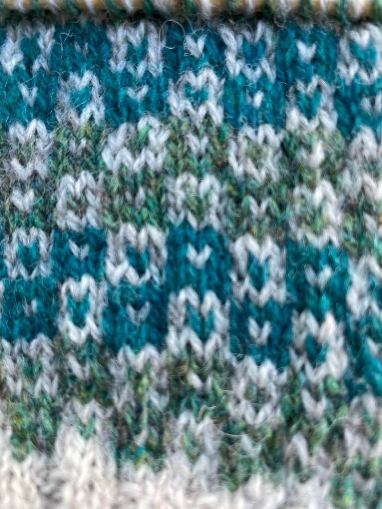 I have used 3 colours in each of my knitted examples, in order to make the knit reasonably priced – rather than the patterns that I have been knitting recently, which have grown in the amount of colours used in them.