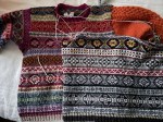 Here are some images of Mary’s test knitting for the long Fair Isle Kep scarf.