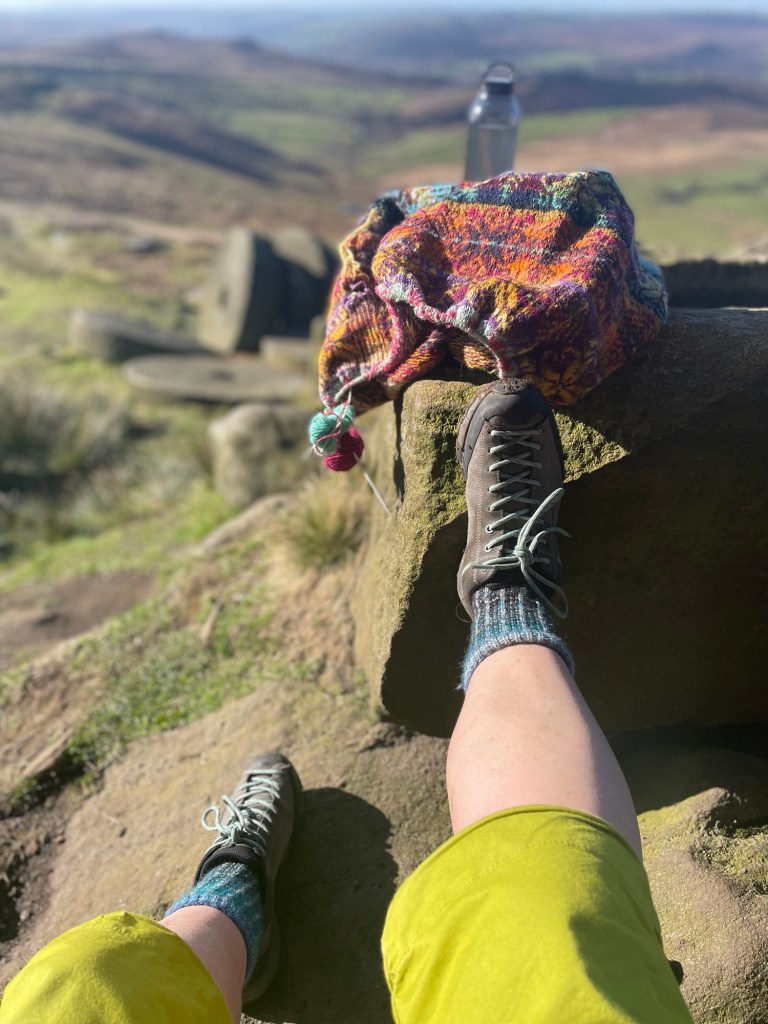 But for now, these are my favourites and I have many happy memories going back over 40 years, just at these very millstones and old stone trough that face towards Hathersage and Hope Valley. I take my knitting, a flask, and time.