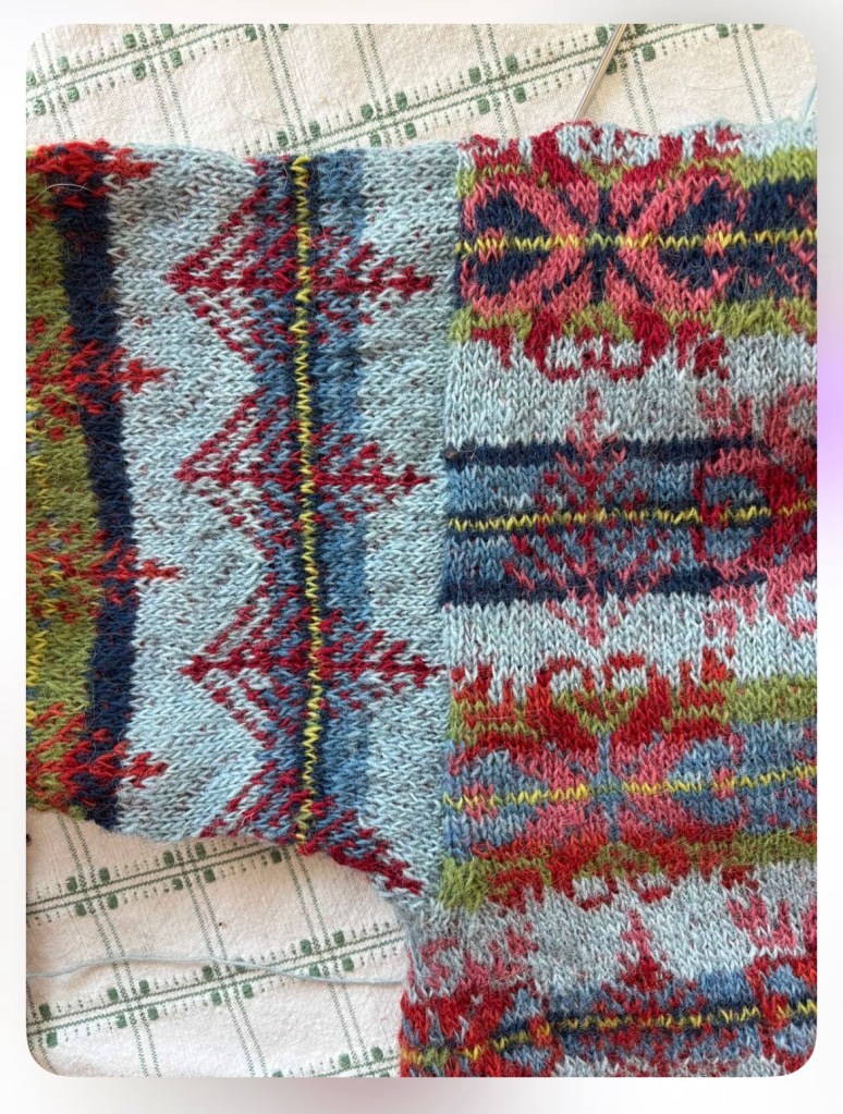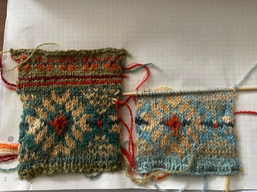 I want to thank this little design that I made whilst staying in Fair Isle then in Brindister, Shetland, running up to the end of 2019. The design challenged me at the end of my MA in Knitting from NTU during which time, I went back and forth to Shetland until I finally bought a croft house there in 2020 and I am ok that I made the decision to return to England in 2021– I wrote a book about my life in Shetland but it never was published.