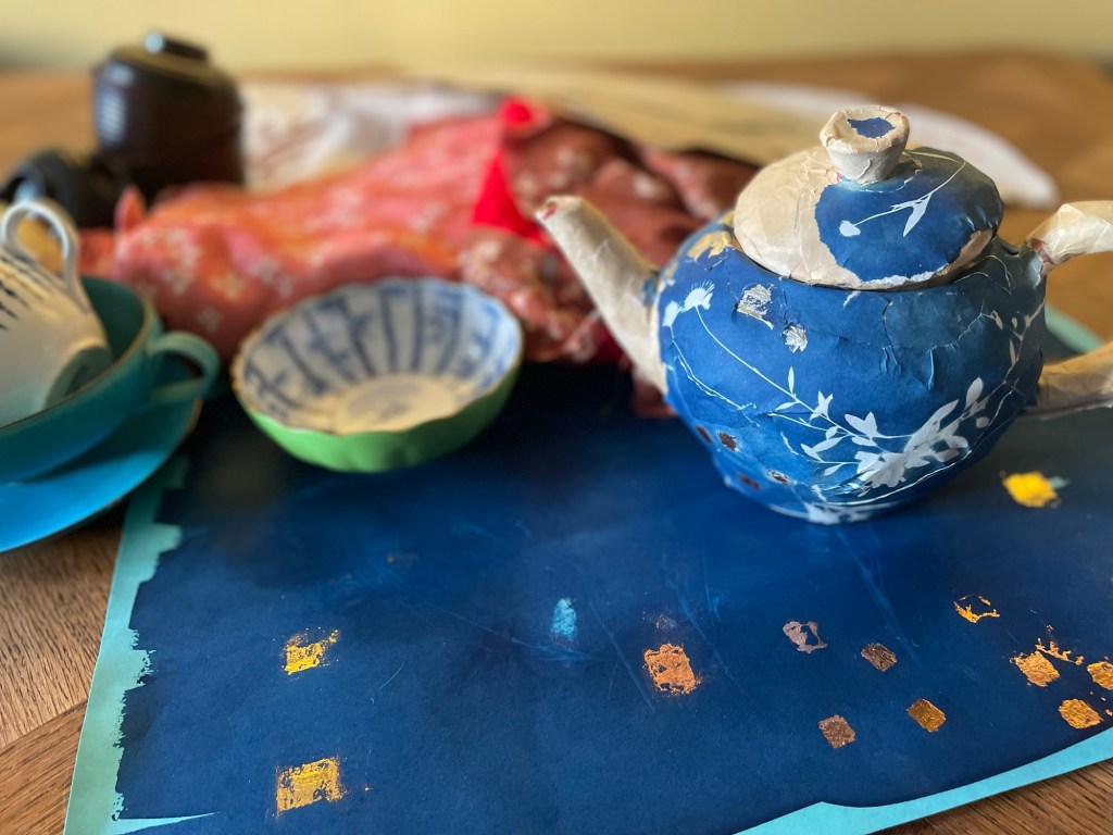 Would you like to try this jumper pattern for your everyday self—or your future self? I am wearing this jumper daily in Japan – it matches the sky and I am having a lot of fun wearing it with the matching hat and a tweed jacket. On Sunday, we all (from the residency) did a drop-in session for anyone who would like to knit or weave or trying punch needling. So many people came to see us including some Tokyo Fashion guys who wore all black, all brown or all Navy and I suggested that they needed a little colour – like a Fair Isle vest just showing through their dark colours -for every day. They were very interested in the colour idea.