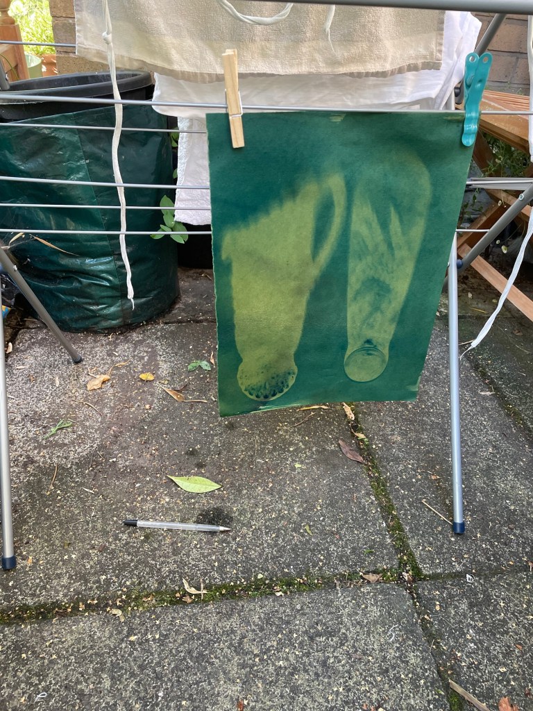 It is a calm Saturday, overcast with a little breeze. I googled the sun and is listed to be out above the city of Sheffield later this afternoon. I have wanted to try something for some time, thinking of home. My cyanotypes have mostly utilised pressed flowers and photographic negatives from when I lived in the hutongs of China, all of which rely on the sun to develop the image. I have mostly worked in the studio but have a small amount of papers that I coated last night, and they are under my nose.