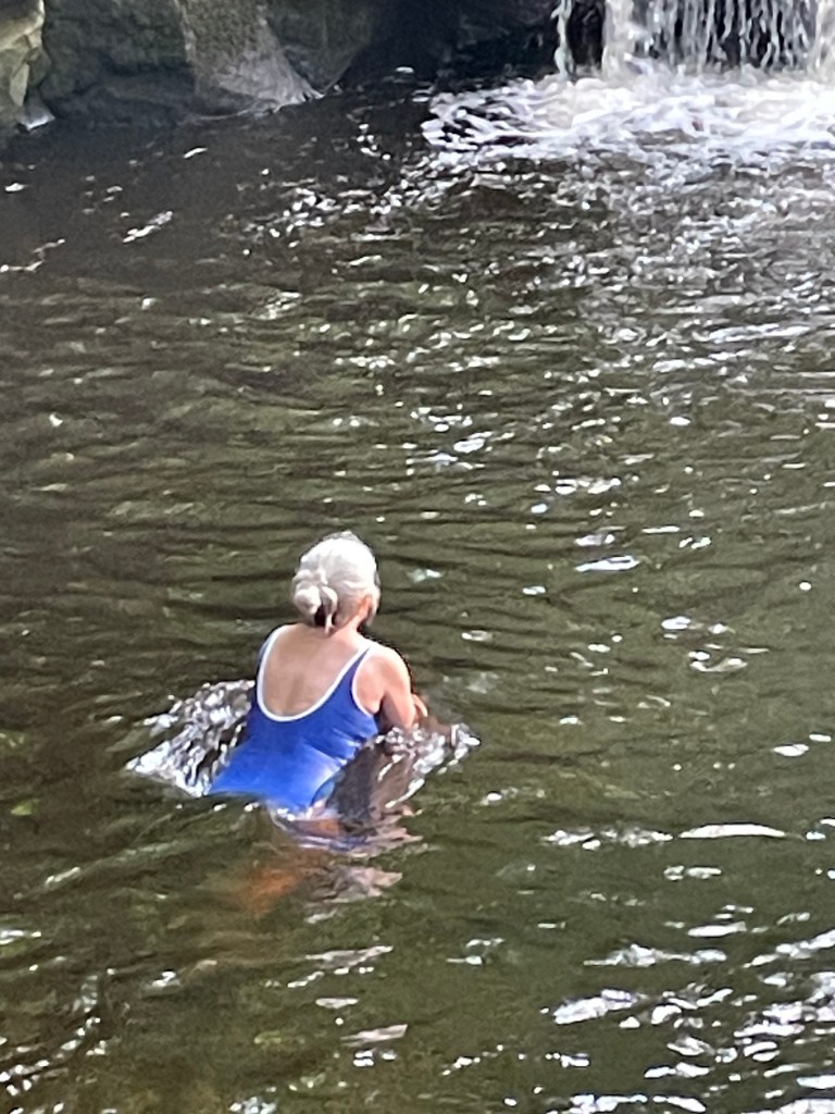 Would you like to try this jumper pattern for your everyday self—or your future self? I am wearing this jumper daily in Japan – it matches the sky and I am having a lot of fun wearing it with the matching hat and a tweed jacket. On Sunday, we all (from the residency) did a drop-in session for anyone who would like to knit or weave or trying punch needling. So many people came to see us including some Tokyo Fashion guys who wore all black, all brown or all Navy and I suggested that they needed a little colour – like a Fair Isle vest just showing through their dark colours -for every day. They were very interested in the colour idea.