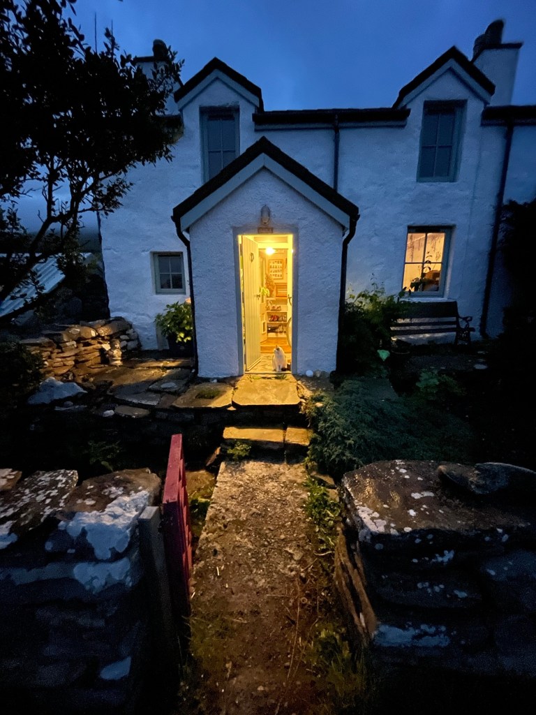 When I lived in Shetland, my knitting patterns and their colour choices were devised around the wild Shetland landscape, the croft house that I lived in and the woman who had lived in the house for 83 years until 1960. But now, the Kaleidoscope jumper has been more playful, named after my own kaleidoscope at home, which has a great big blue marble at the end.